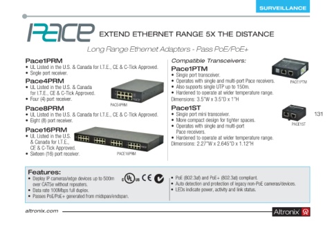 • UL Listed in the U .S . & Canada for I .T .E ., CE & C-Tick Approved . Pace1PTM