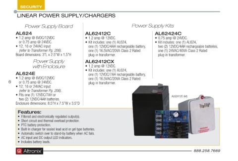 • 1 .2 amp @ 6VDC/12VDC one (1) 16 .5VAC/20VA Class 2 Rated
